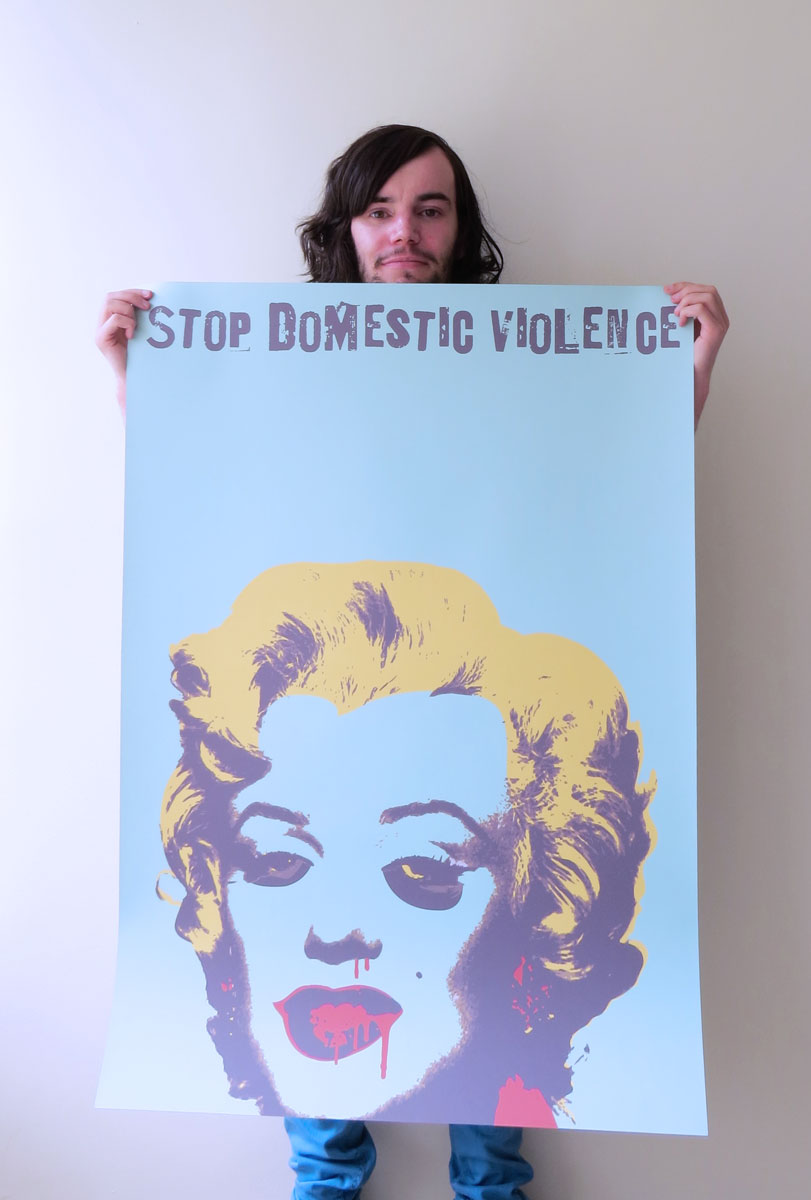 Christopher Scott with his poster print Monroe Bruised.